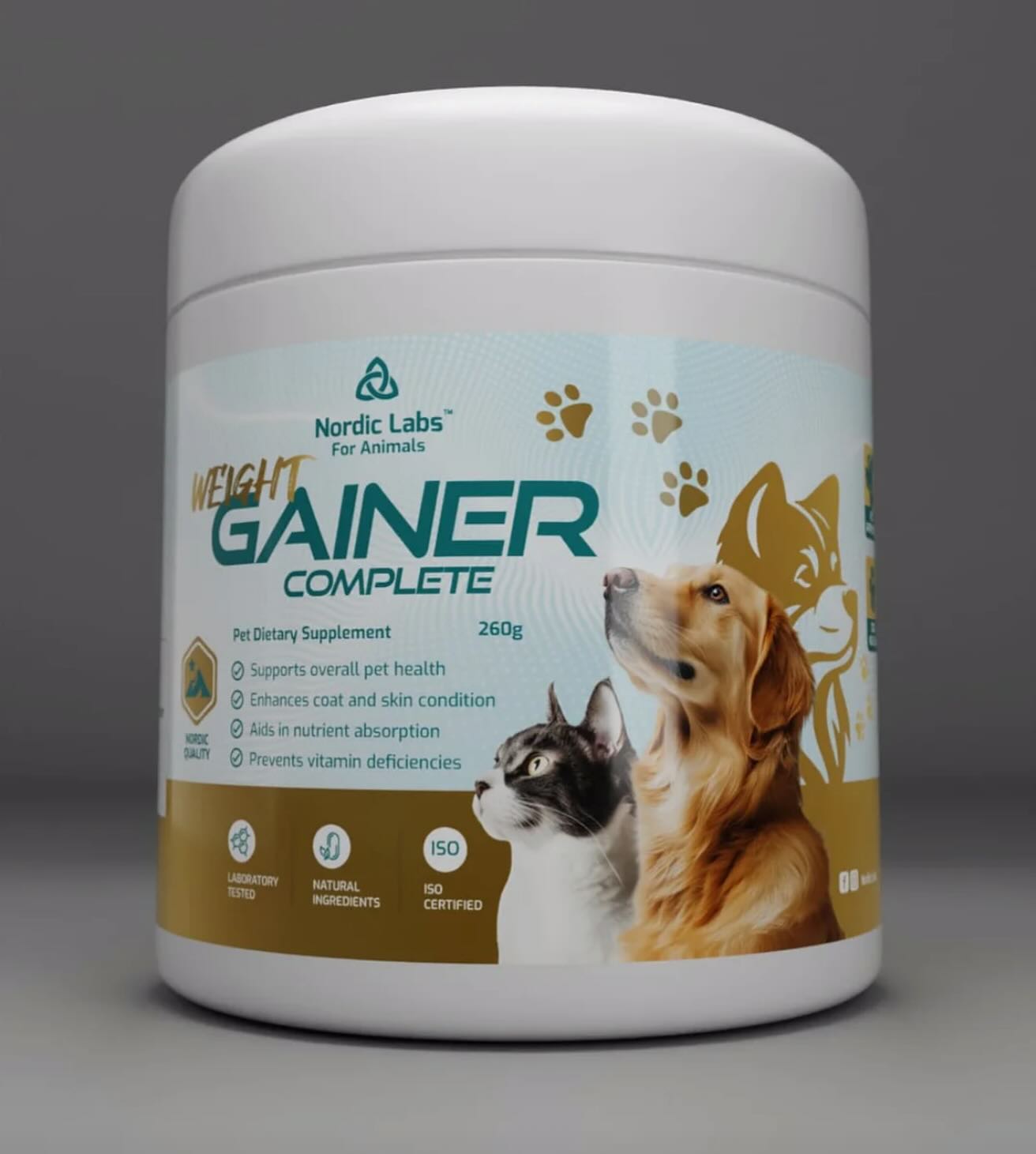 Nordic Labs Gainer Complete is a specialized nutritional supplement formulated to support healthy weight gain and overall vitality in pets. With a balanced blend of natural ingredients, vitamins, and minerals, it helps stimulate appetite, strengthen immunity, and promote balanced gut flora for optimal digestion and development.